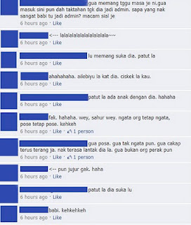 ade lah seorang admin tu,buatkan member aku ni jadi admin kat dalam satu group ni.boleh dikatakan admin ni retis juga la orangnya.suka juga la dia memberi teguran tapi bahasanya sangat lancang.samalah dengan kawan dia ini.korang semua kenal sangat dia ni sebab dia ni retis.retis yang disayangi orang ramai.tapi sayangnya orang ramai tidak mengetahui cerita yang sebenarnya.